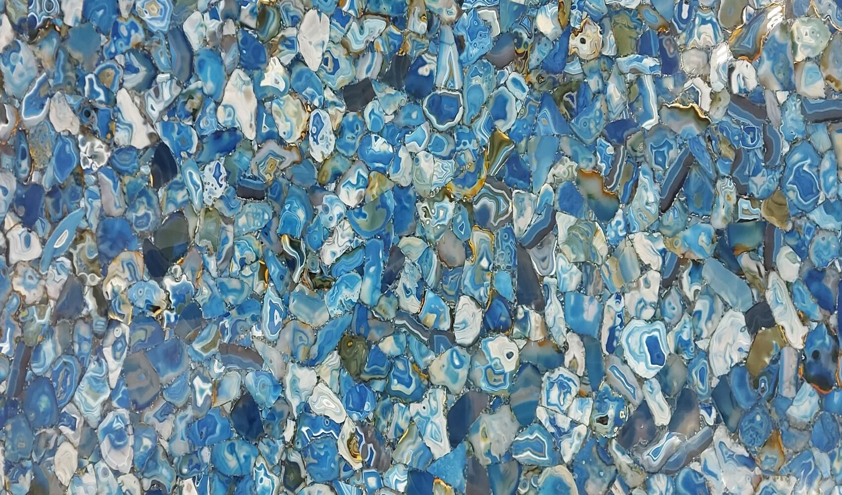 Голубой агат – это уникальный дар природы. Глубокий, насыщенный цвет и неповторимые узоры делают его одним из самых желанных материалов в мире дизайна интерьеров. Этот натуральный камень обладает уникальными свойствами и характеристиками, благодаря которым он может использоваться для внутренней отделки домов, квартир, кафе, ресторанов, офисов и косметологических центров. Это элитный камень, который отлично работает с подсветкой и позволяет создать роскошный интерьер.