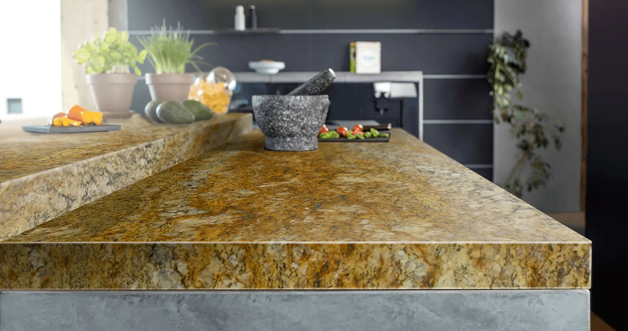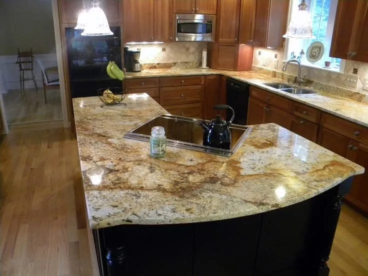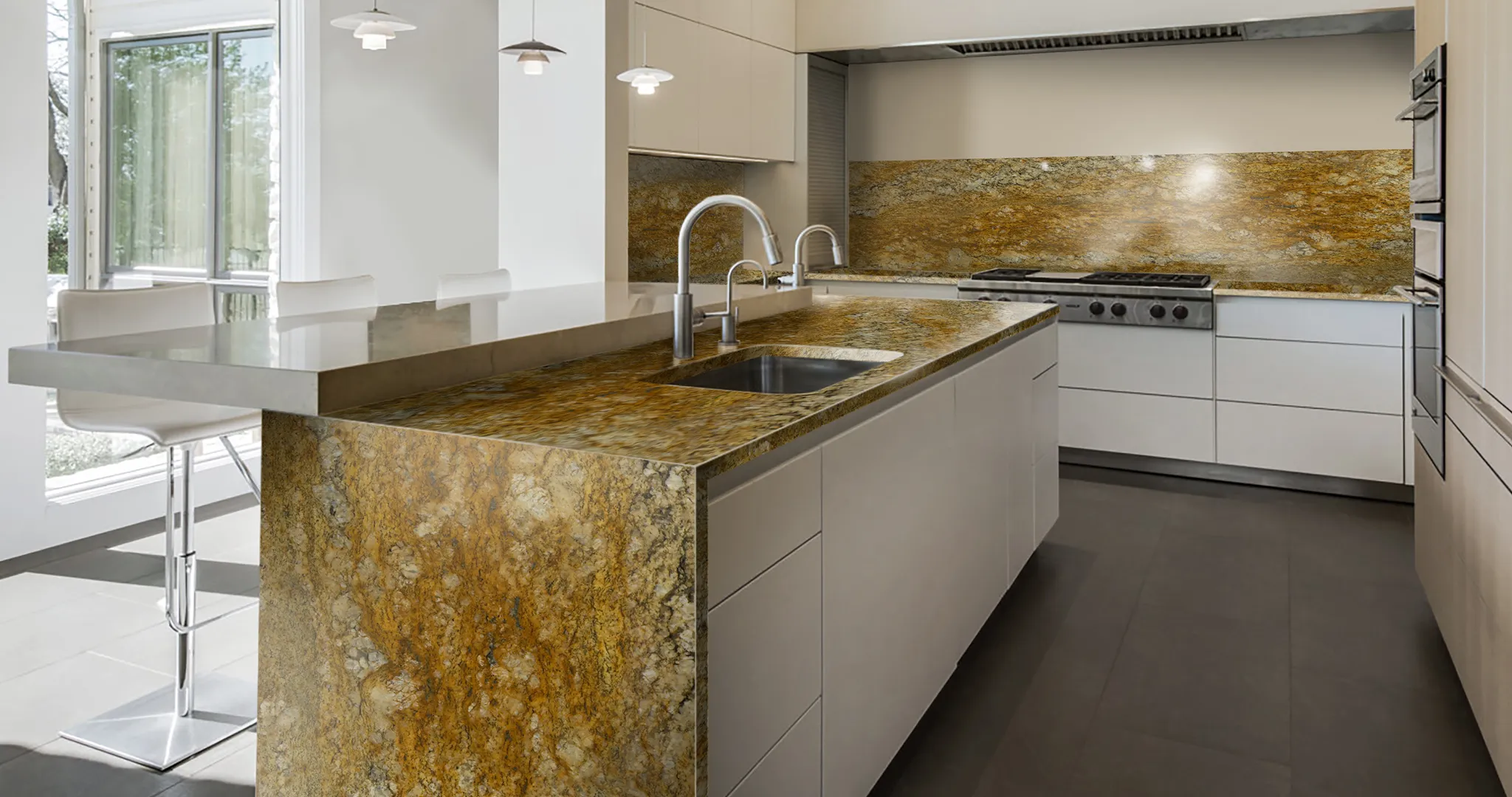Гранит Alaska Gold в интерьере (столешница и остров)