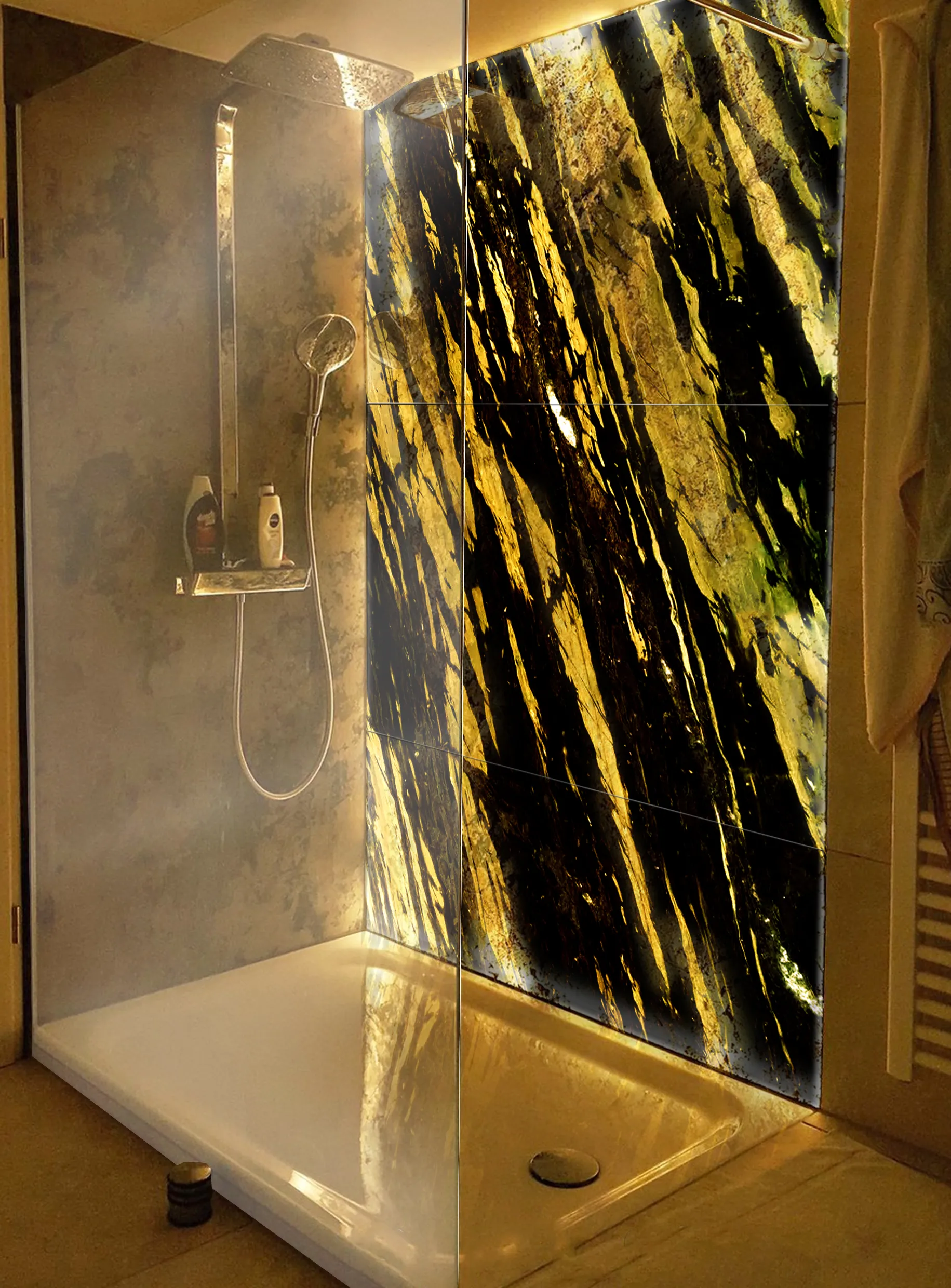 Панно – одно из лучших решений для оникса в интерьере ванной. Оно позволяет максимально полно раскрыть уникальный природный рисунок камня, превратив стену в законченное художественное произведение.