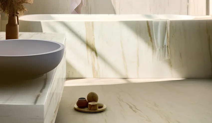 Текстура Бьянко Венато Голд и его теплые, светлые оттенки создают спокойную и уютную атмосферу. Этот мрамор используется для внутренних помещений – облицовки стен и полов, оформления каминов, лестниц и подоконников, создания декоративных панелей. Bianco Venato Gold особенно красиво смотрится в изделиях большого формата, но из него также изготавливают эффектные декоративные столешницы и подоконники. На его фоне более ярко и выигрышно смотрятся акцентные материалы.